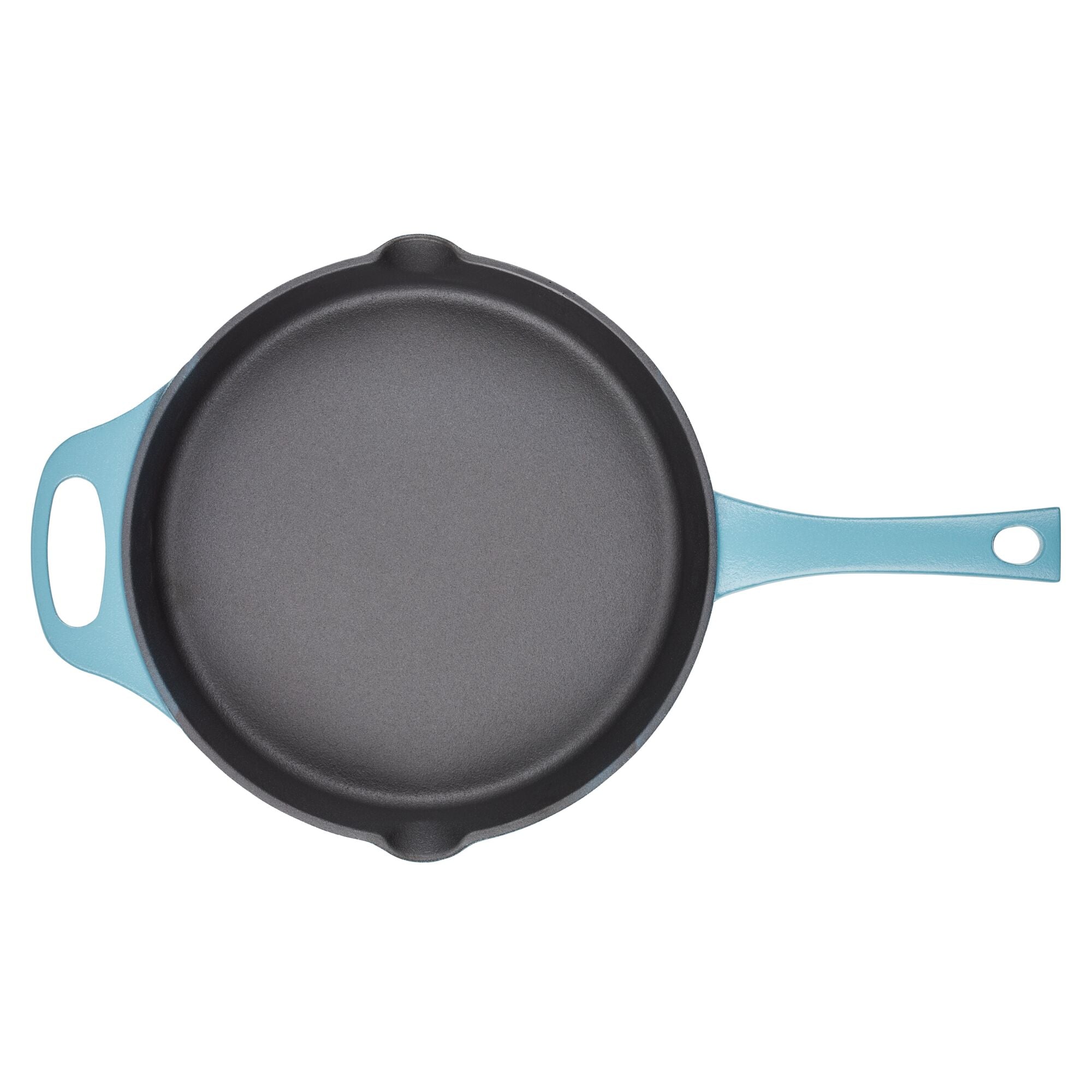 Meet your new kitchen hero! Get incredible cast iron performance that’s easy to maintain with this Rachael Ray NITRO Cast Iron Skillet that delivers the classic durability and performance of cast iron without the hassle of complicated cleaning. A next-generation nitro heat treatment seals and smooths surfaces for amazing. easy-to-use. easy-to-clean cast iron that’s fortified to resist rust. chipping. and staining. Wash it. scrub it. crank it up on the stovetop or in the oven! This amazing 10-inch cast iron frying pan features a helper handle for all of your stove-to-oven recipes and built-in spouts for easy pouring. and the satiny-smooth nitro finish holds brilliant colors to complement any kitchen. Oven safe to a ripping 500°F. induction capable and made to last a lifetime (and look great for a lifetime. too). this durable meal maker is pre-seasoned and ready to deliver. See why cast iron is one of Rachael’s favorite ways to make meals even more delish.