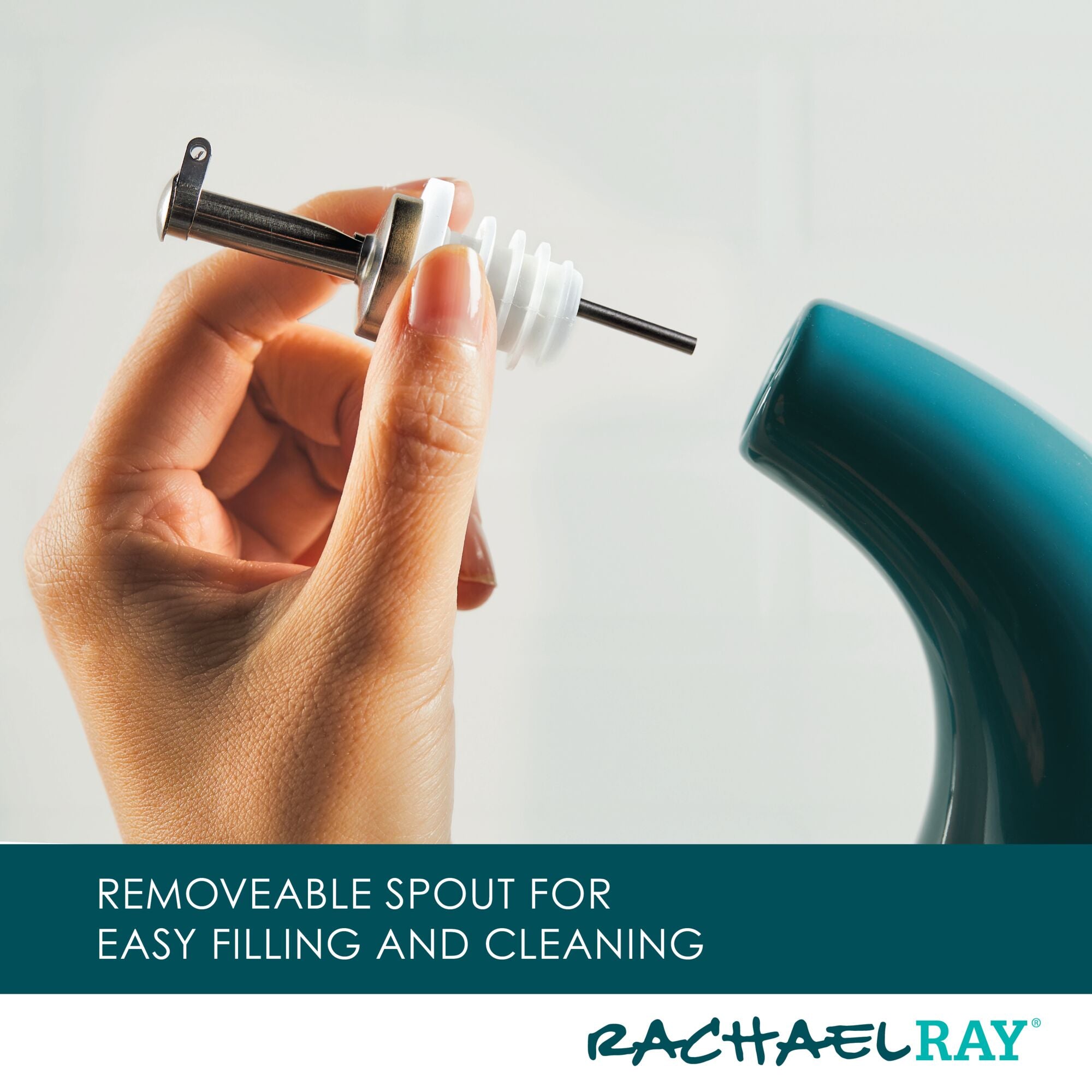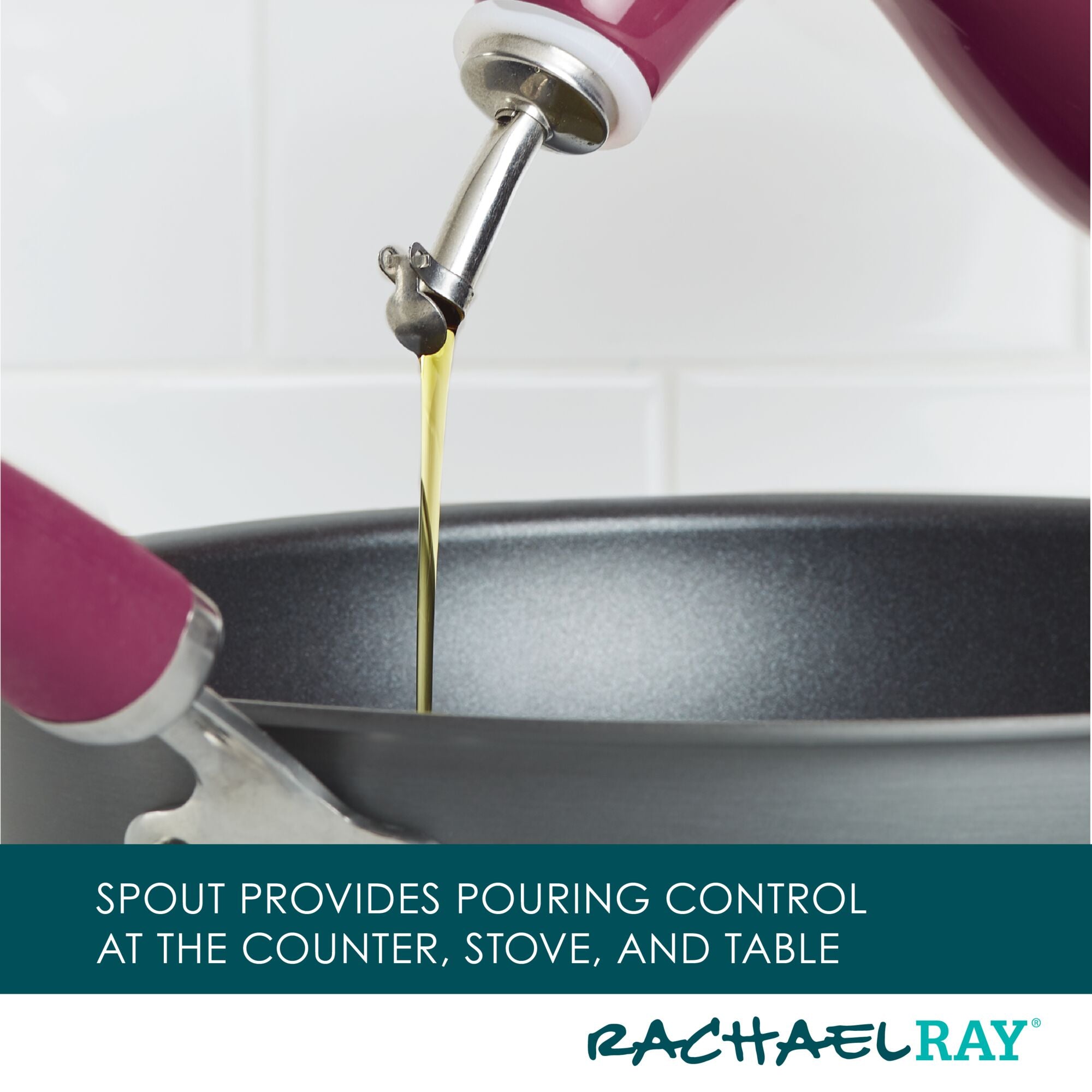 Shake things up in the kitchen with Rach’s iconic EVOO bottle that’s perfect for dispensing oil. vinegar. or other cooking sauces. Featuring a built-in handle for a balanced. easy grip. the bottle has a stainless steel pour spout and is contoured for precision pouring. Dishwasher safe.