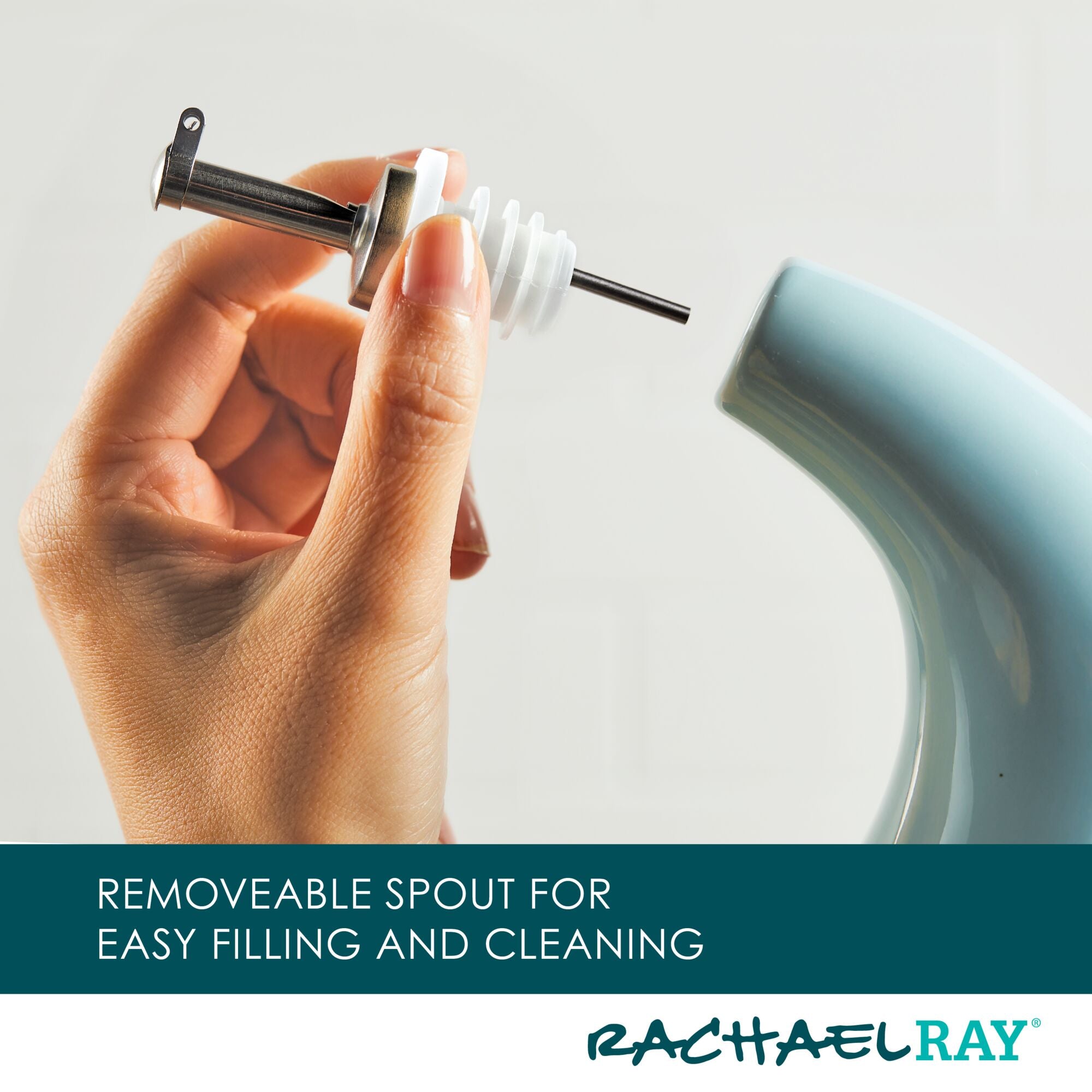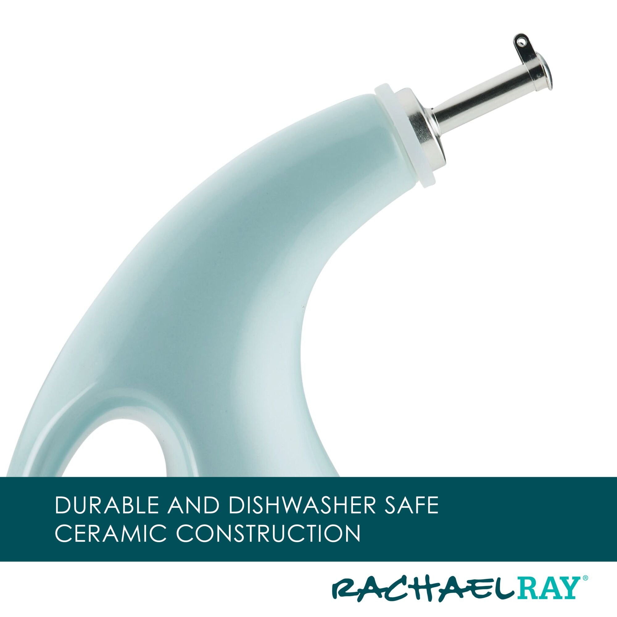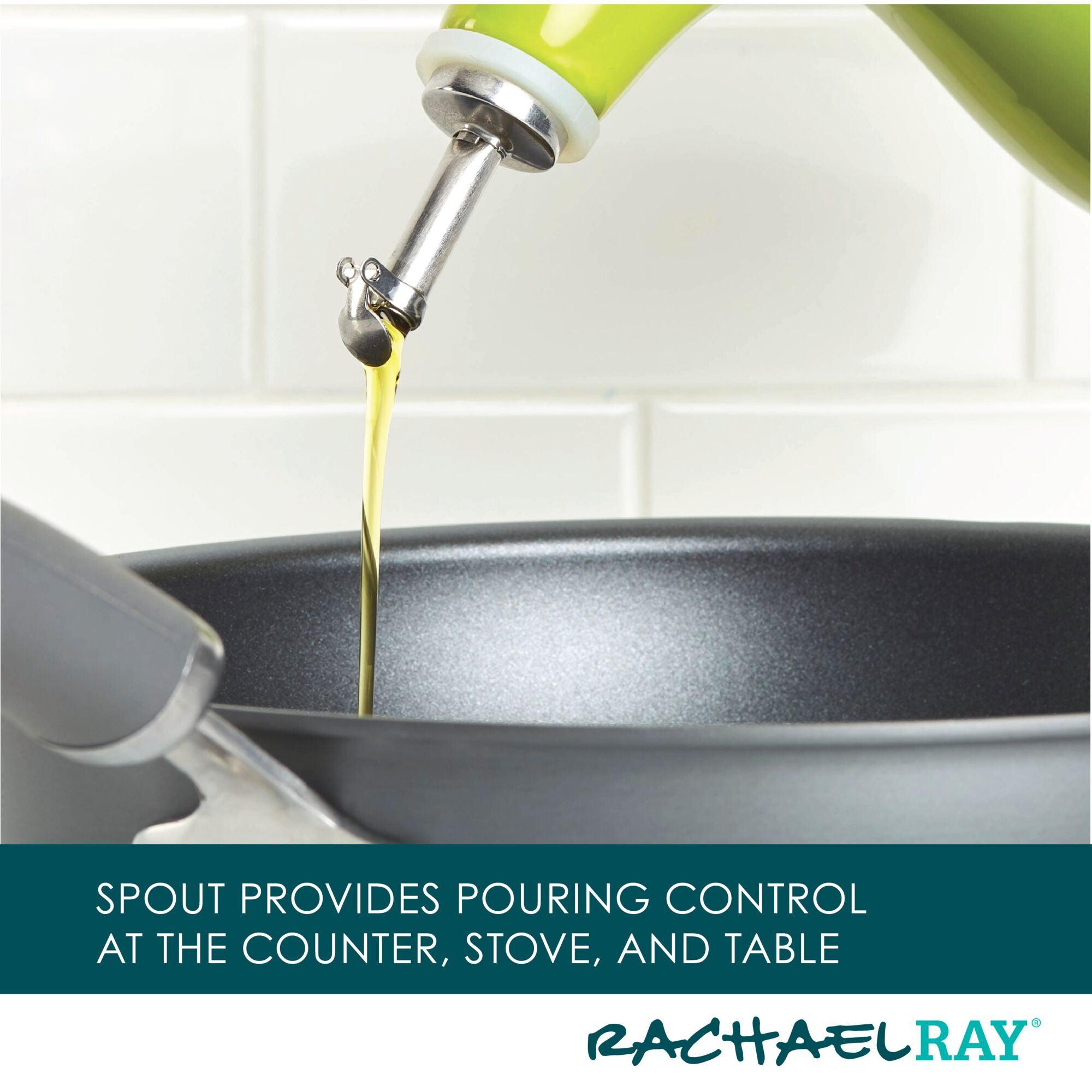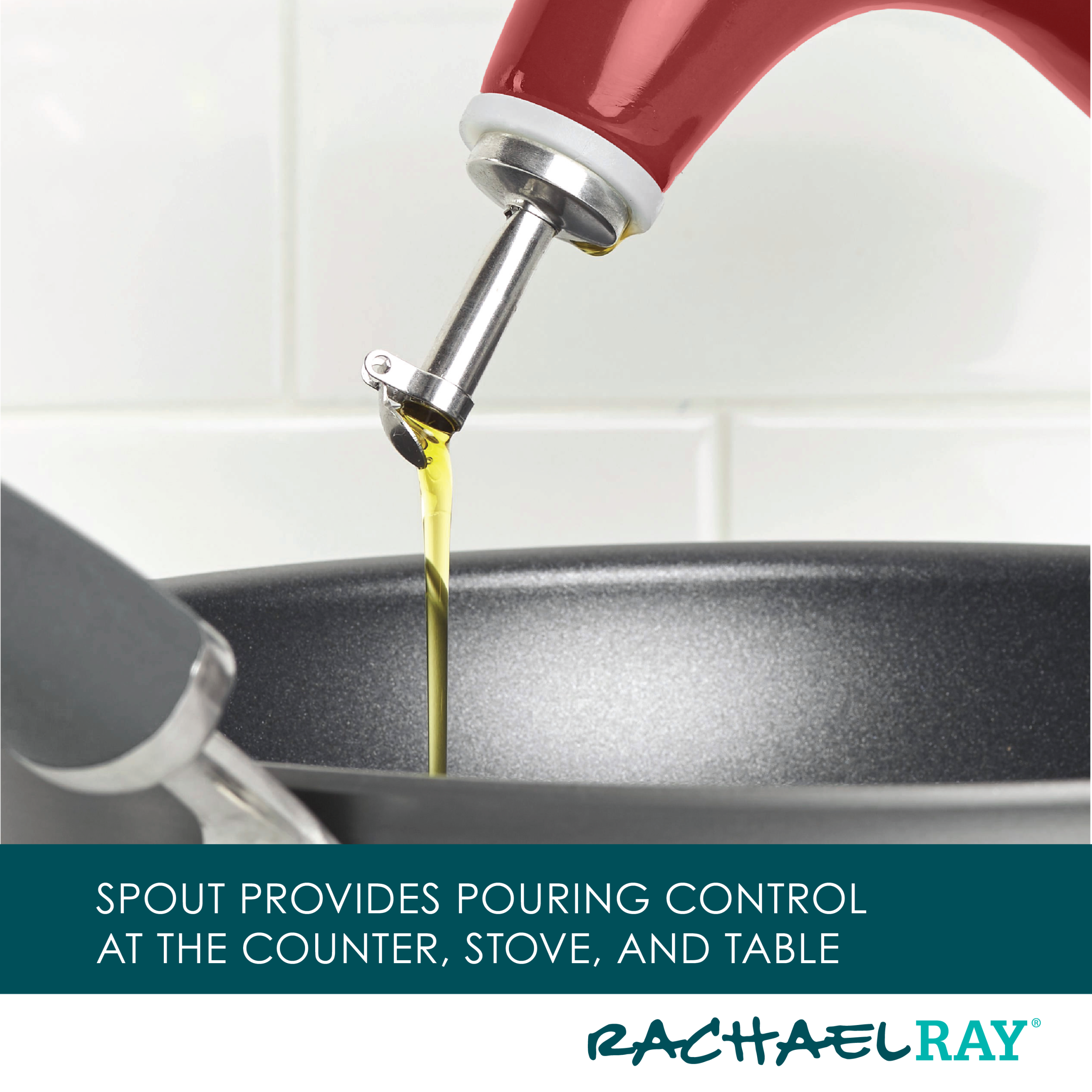 Shake things up in the kitchen with Rach’s iconic EVOO bottle that’s perfect for dispensing oil. vinegar. or other cooking sauces. Featuring a built-in handle for a balanced. easy grip. the bottle has a stainless steel pour spout and is contoured for precision pouring. Dishwasher safe.