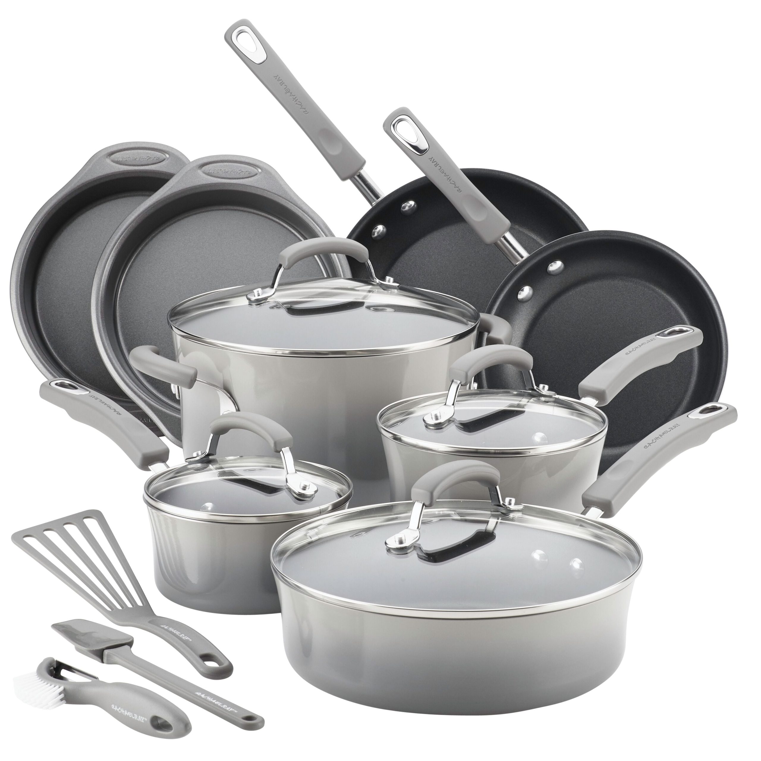 From saucepans to skillets to a large stockpot for one of Rachael Ray’s delish stoups. plus convenient kitchen tools and a handy baking sheet. this versatile cookware set makes it easy to whip up your favorite dishes. The cookware and bakeware features the quality design and construction expected from Rachael Ray for fast. efficient cooking when you need it most. Long-lasting nonstick makes food release and cleanup easy. and the sturdy colorful porcelain enamel cookware provides a pop of kitchen personality. Cookware is oven safe to 350°F. bakeware is oven safe to 450°F. and the versatile set includes all the right kitchenware ingredients to help make your ingredients and Rach’s recipes even more delish.