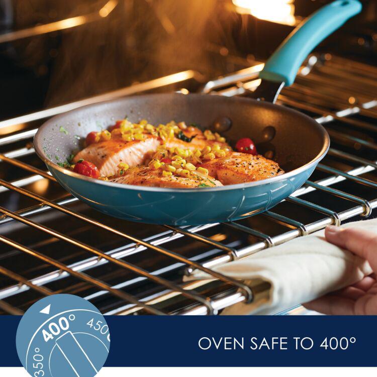 These practical 9.5-inch and 11.75-inch frying pans are crafted from thicker gauge aluminum for a luxe. sturdy feel and reliable stovetop performance that heat up quickly and evenly. Fry pans are finished with high-quality nonstick for effortless food release and easy cleanup.