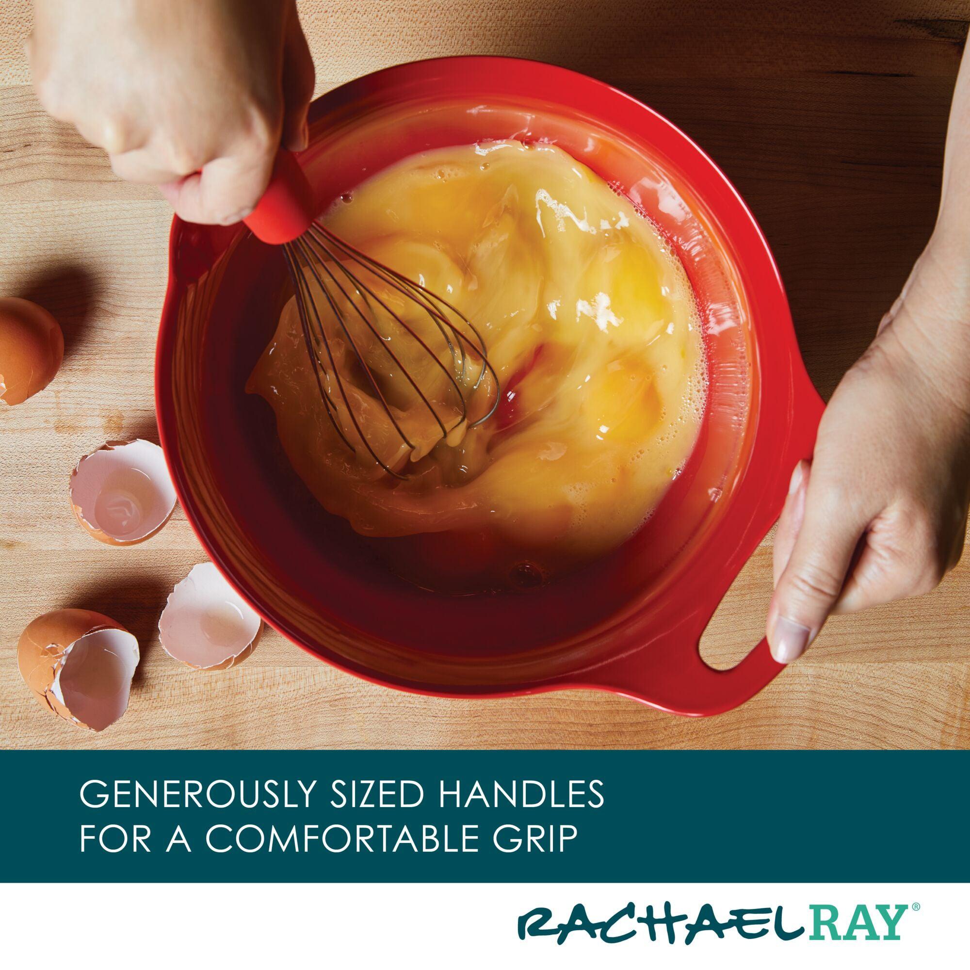 Mix pancake batter or dress side salads with these durable melamine nesting mixing bowls. Built-in pour spouts make it easy to get every last drop while the rubberized bottom keeps the bowls from slipping on countertops. Top-rack dishwasher safe for an easy cleanup.