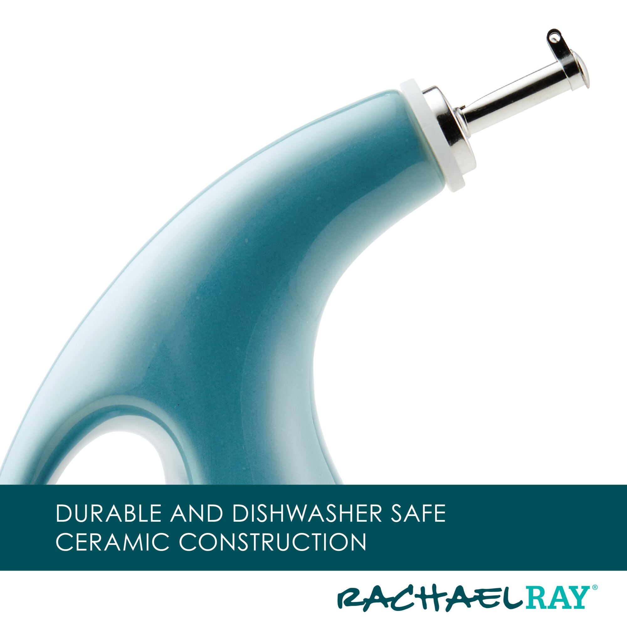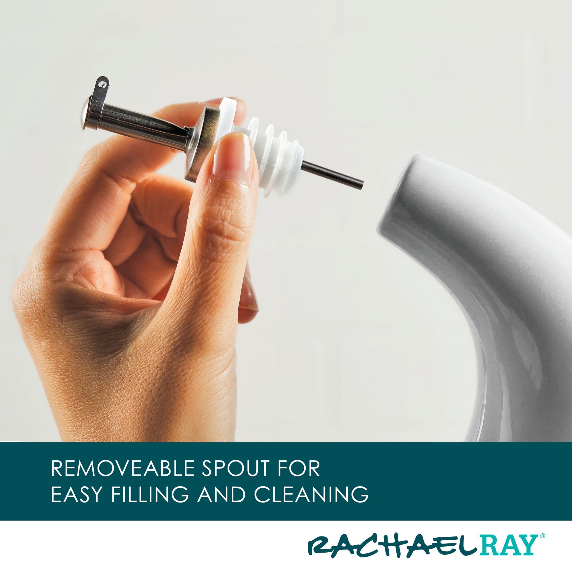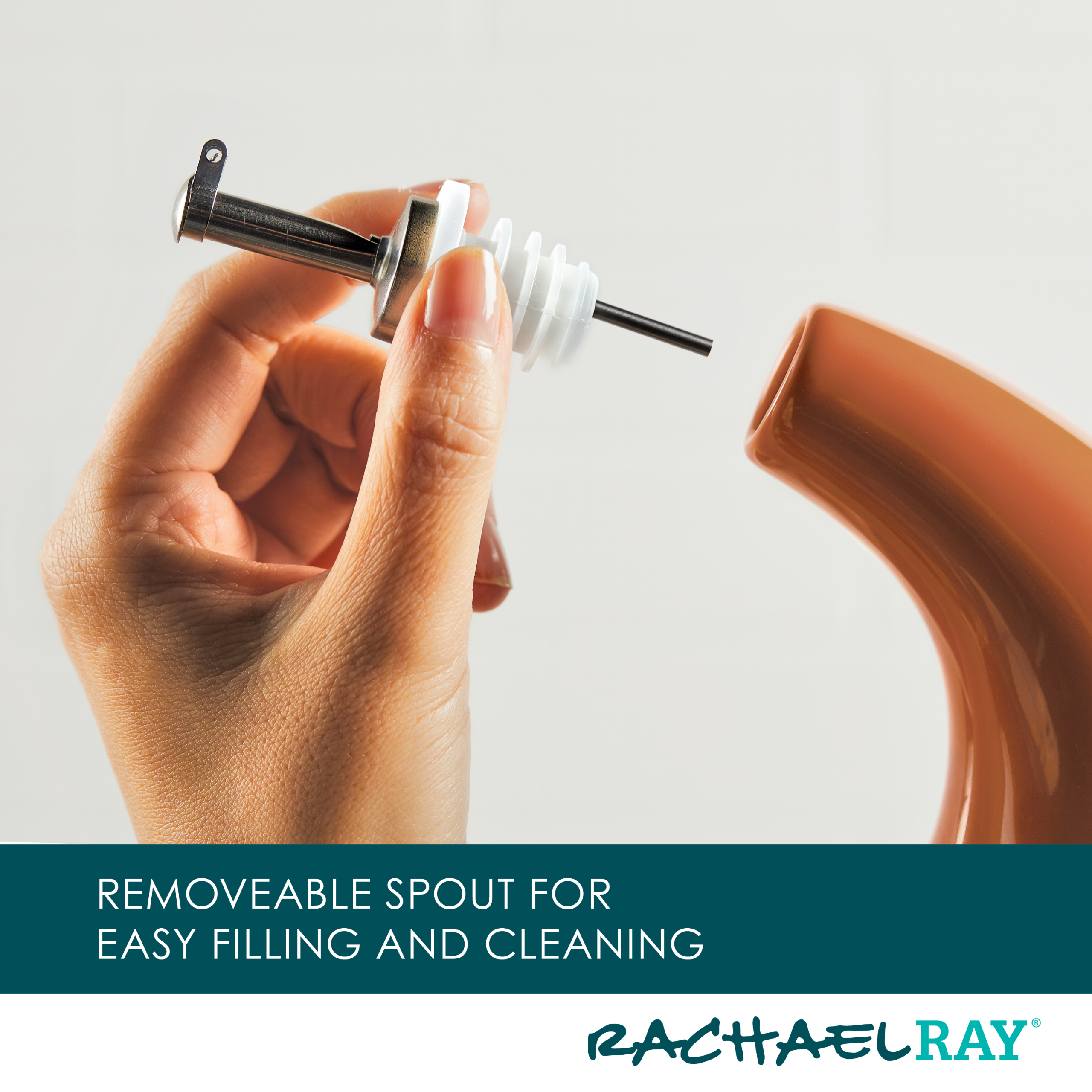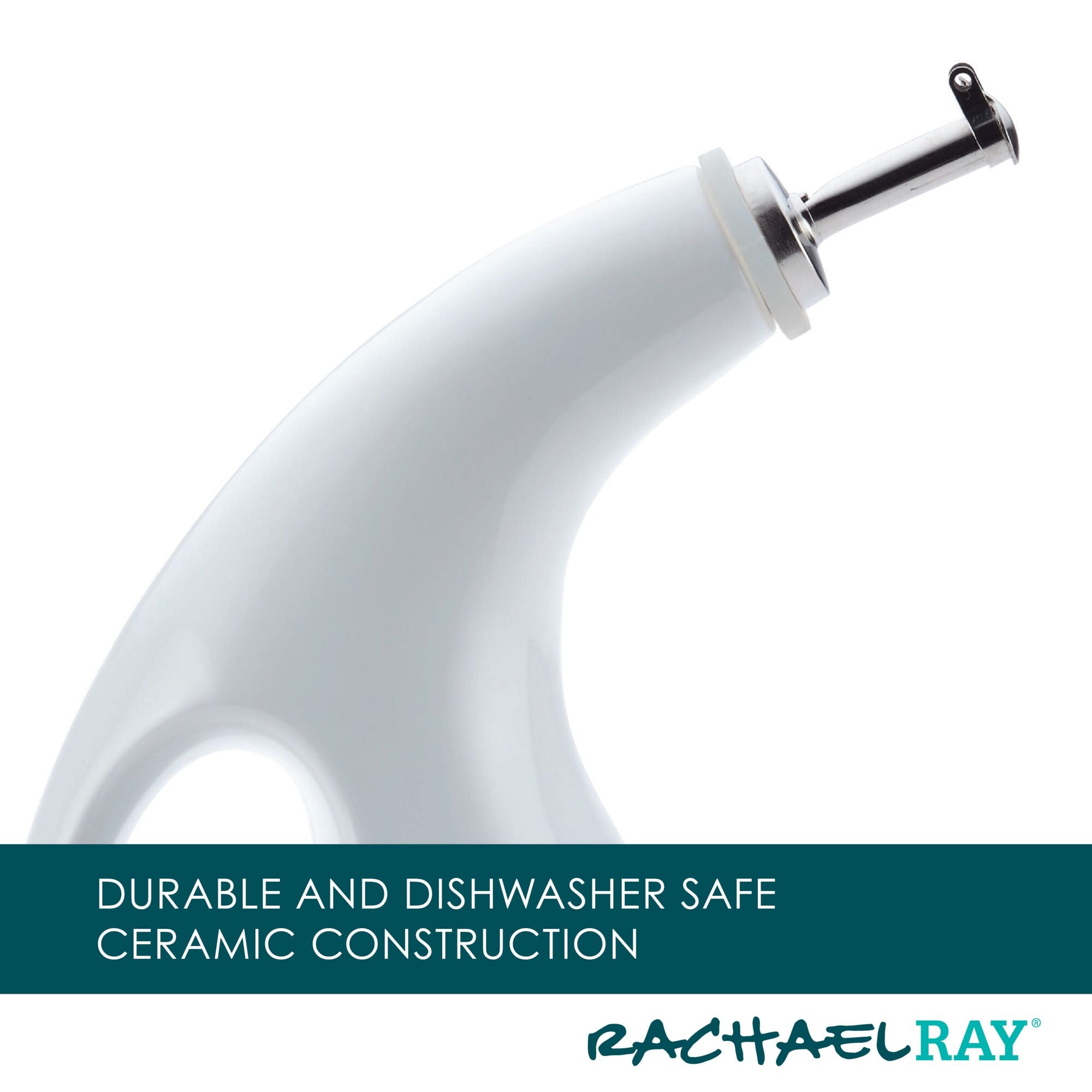 Shake things up in the kitchen with Rach’s iconic EVOO bottle that’s perfect for dispensing oil. vinegar. or other cooking sauces. Featuring a built-in handle for a balanced. easy grip. the bottle has a stainless steel pour spout and is contoured for precision pouring. Dishwasher safe.
