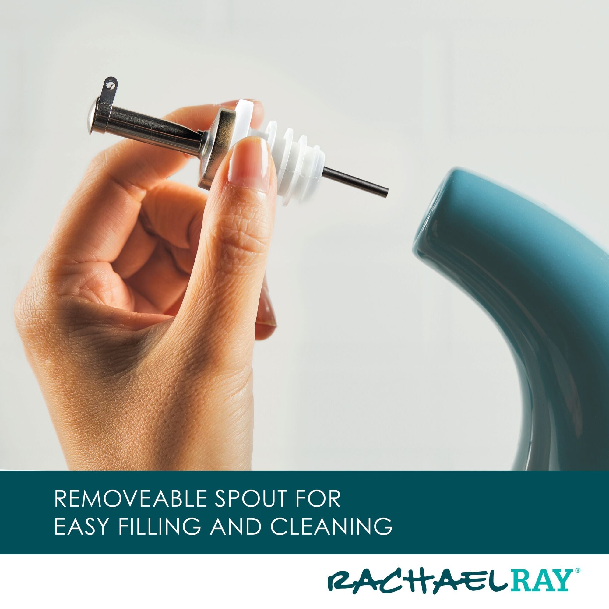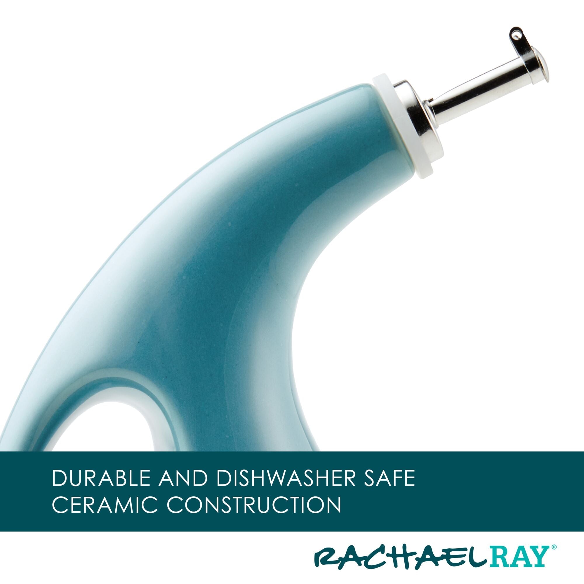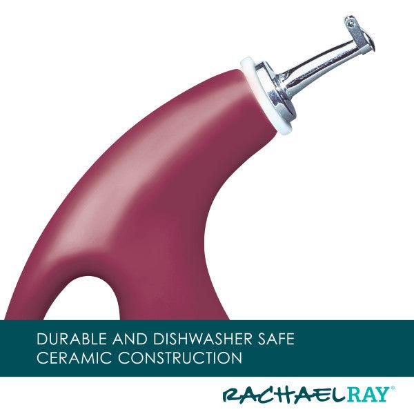 Shake things up in the kitchen with Rach’s iconic EVOO bottle that’s perfect for dispensing oil. vinegar. or other cooking sauces. Featuring a built-in handle for a balanced. easy grip. the bottle has a stainless steel pour spout and is contoured for precision pouring. Dishwasher safe. Get these colors before they are gone!